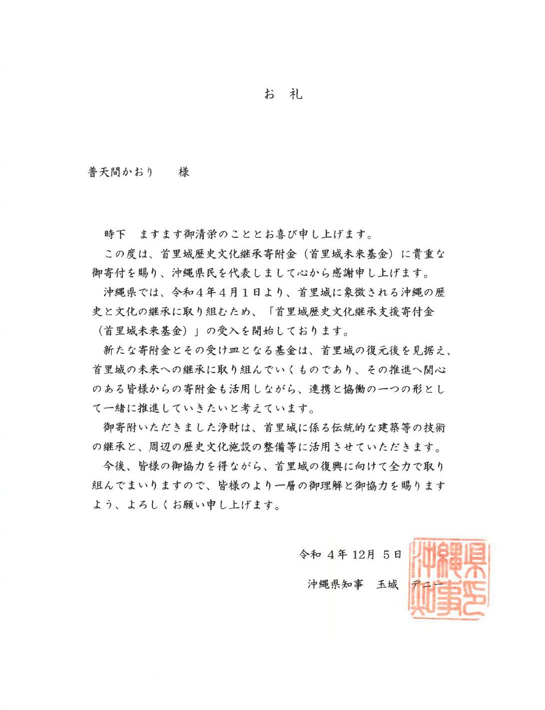 沖縄県 玉城知事よりお礼状を頂きました → こちら |