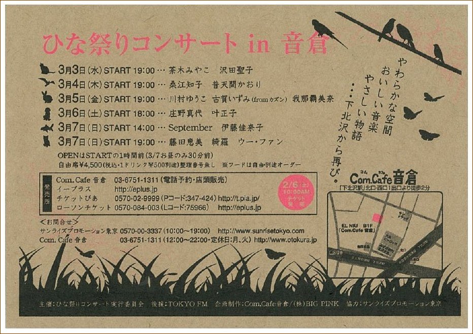 料金:¥3.000(前売り) ¥3.500(当日)全席自由