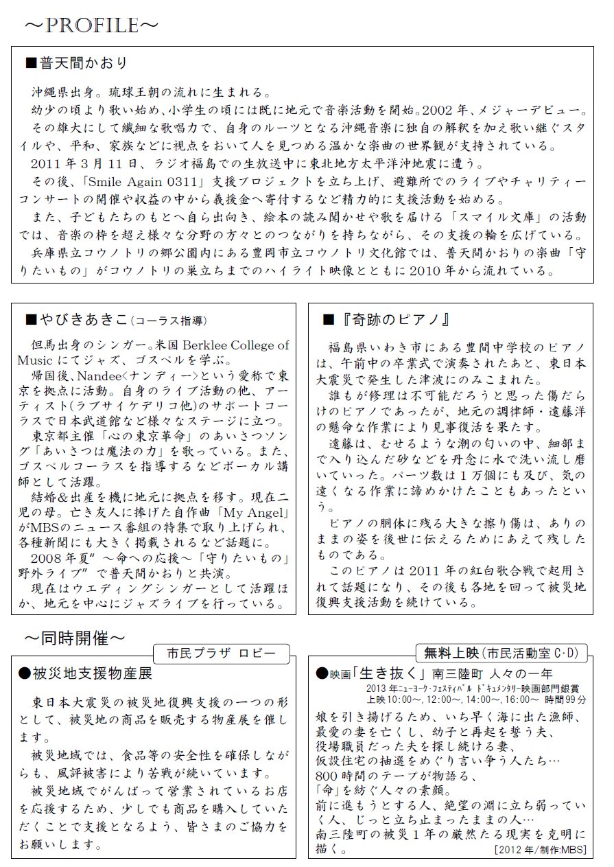 奇跡のピアノ&普天間かおりチャリティーコンサート |