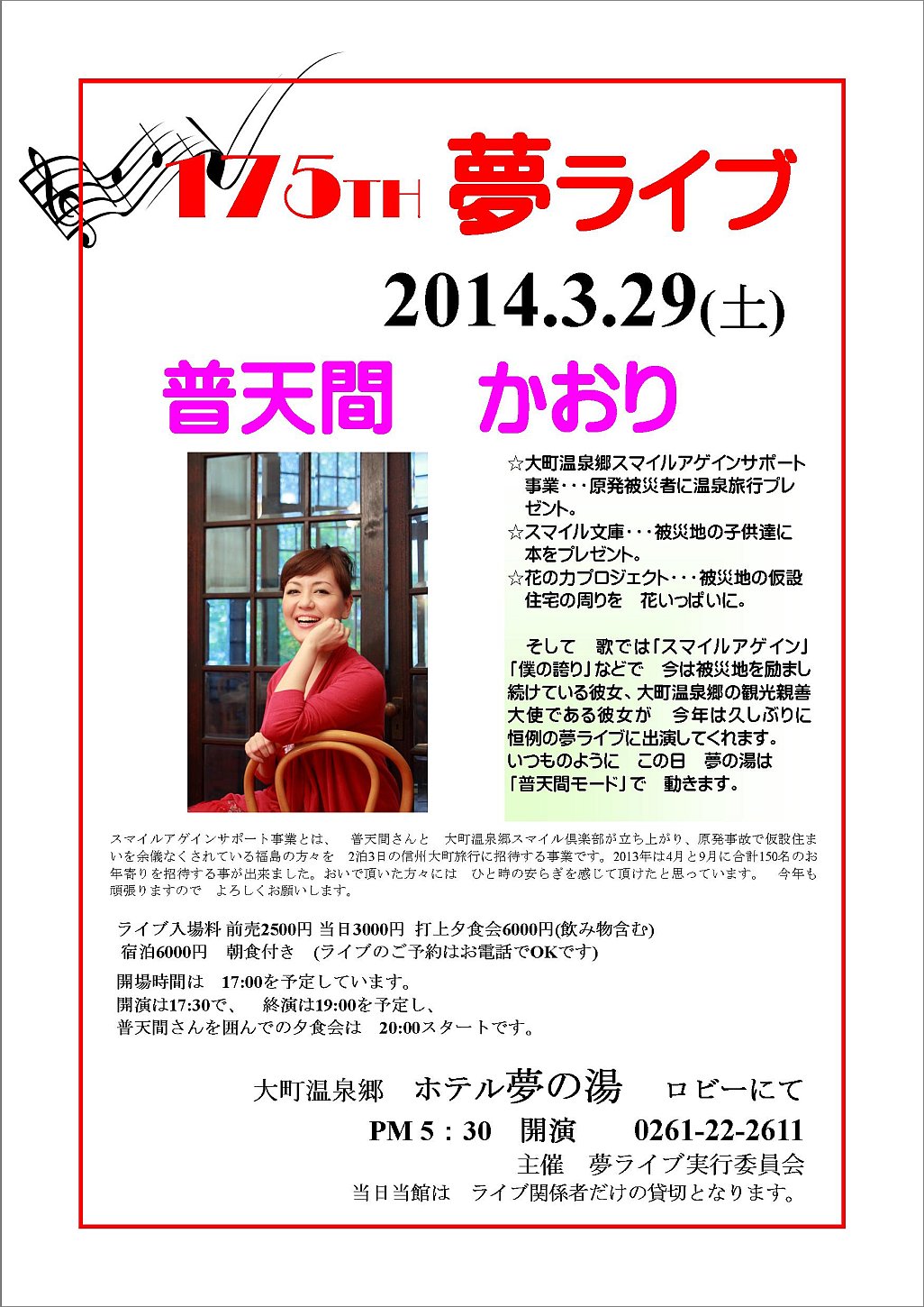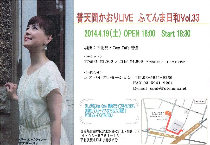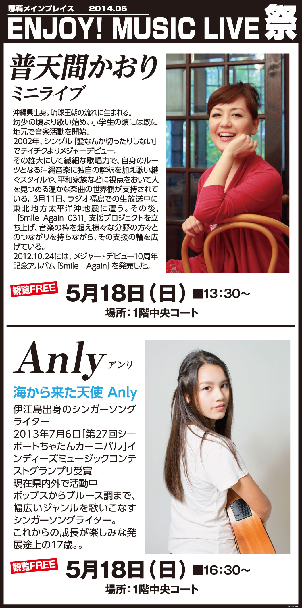 普天間かおりミニコンサートは22日(土)18:00〜(予定)