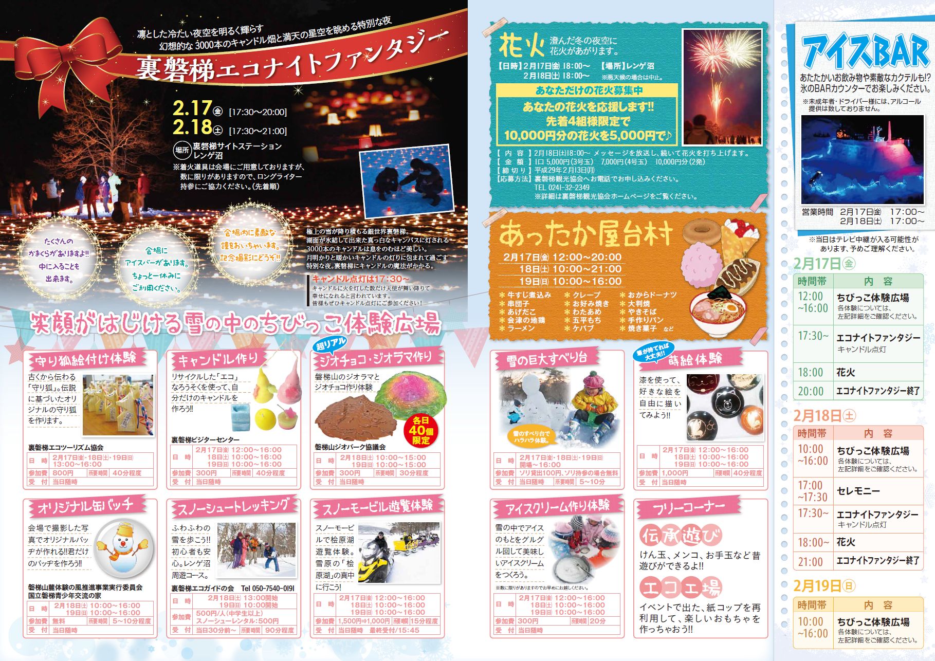 2月17日(金)〜19(日) 第9回 裏磐梯雪まつり 2017 裏磐梯エコナイトファンタジー |