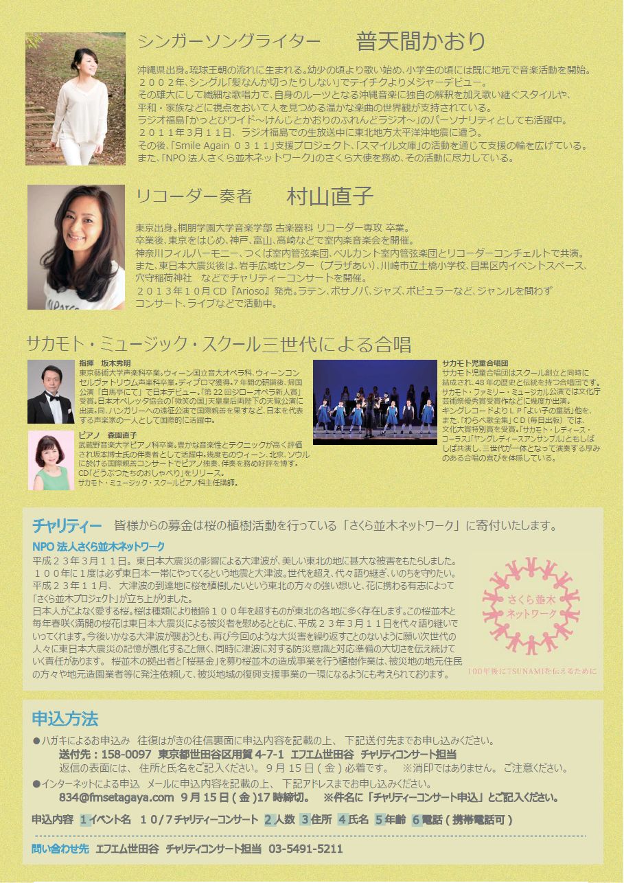 10月7日(土) 東日本大震災復興支援チャリティーコンサート さくら並木の道しるべ Vol.6 |