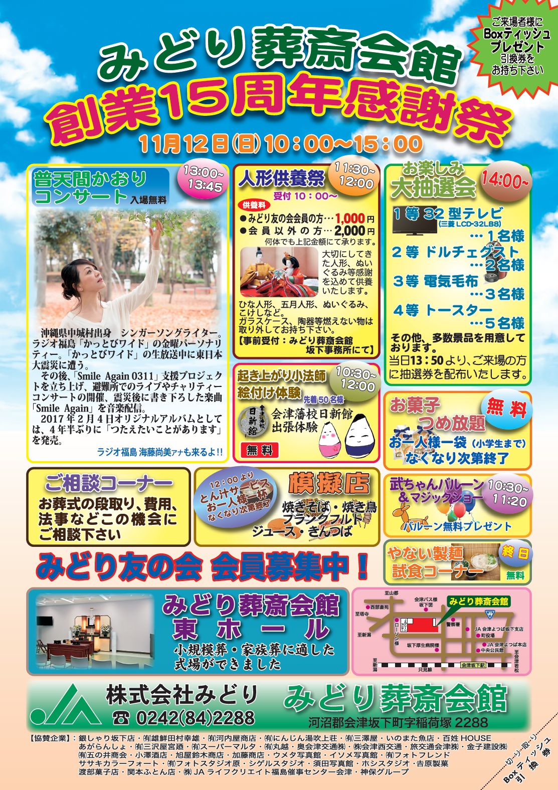 11月12日(日) JA会津みどり斎苑 15周年記念イベント |