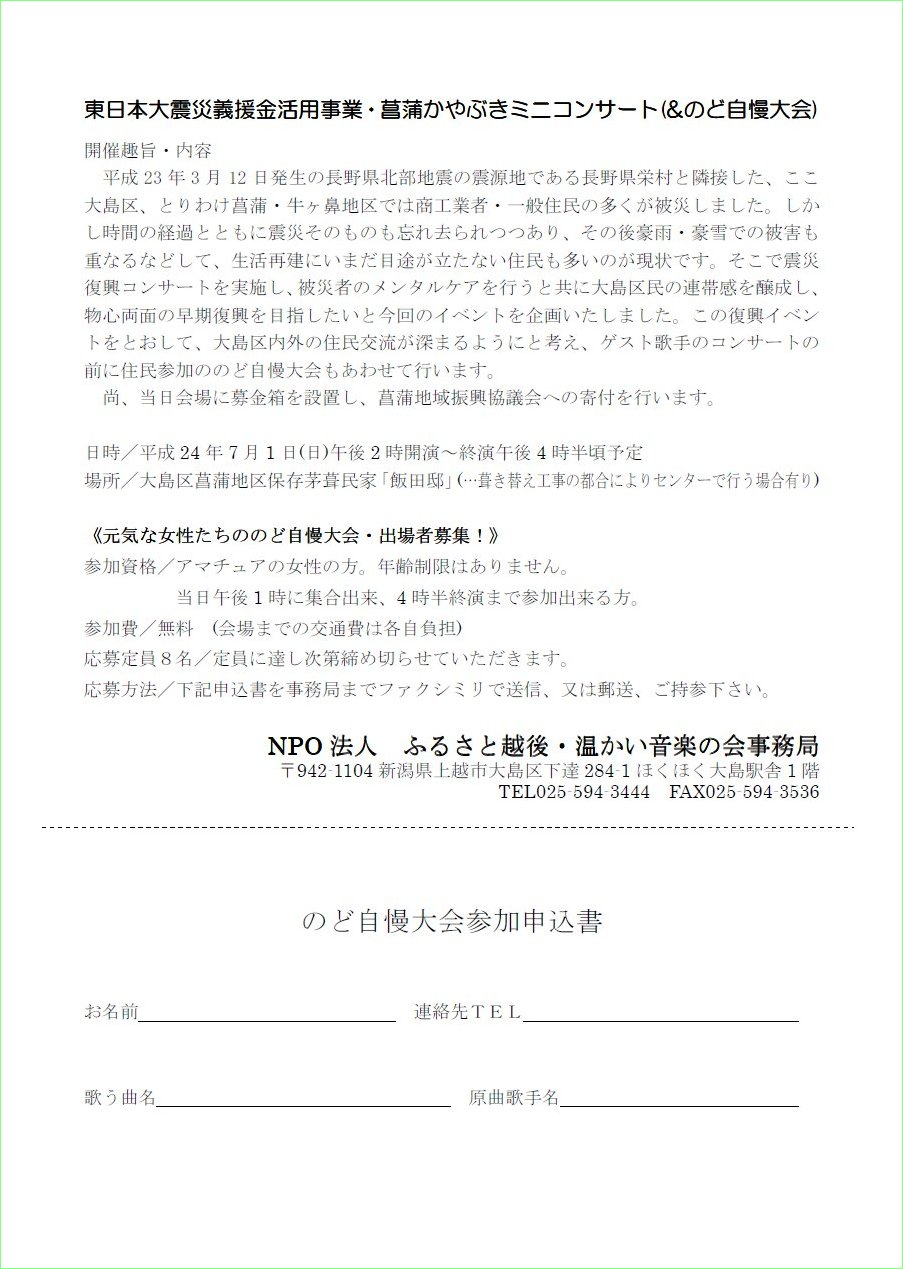 *コンサート会場にて募金活動を行い、全額、「あしなが育英会」を通じて震災遺児へ寄付いたします。 |