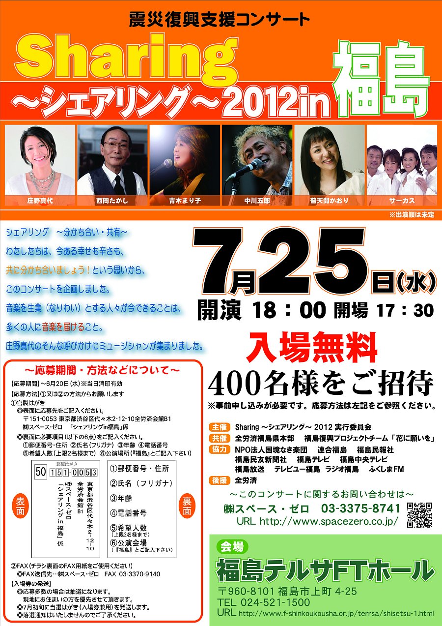 入場無料: (自由席先着1000名 整理券で入場ください)