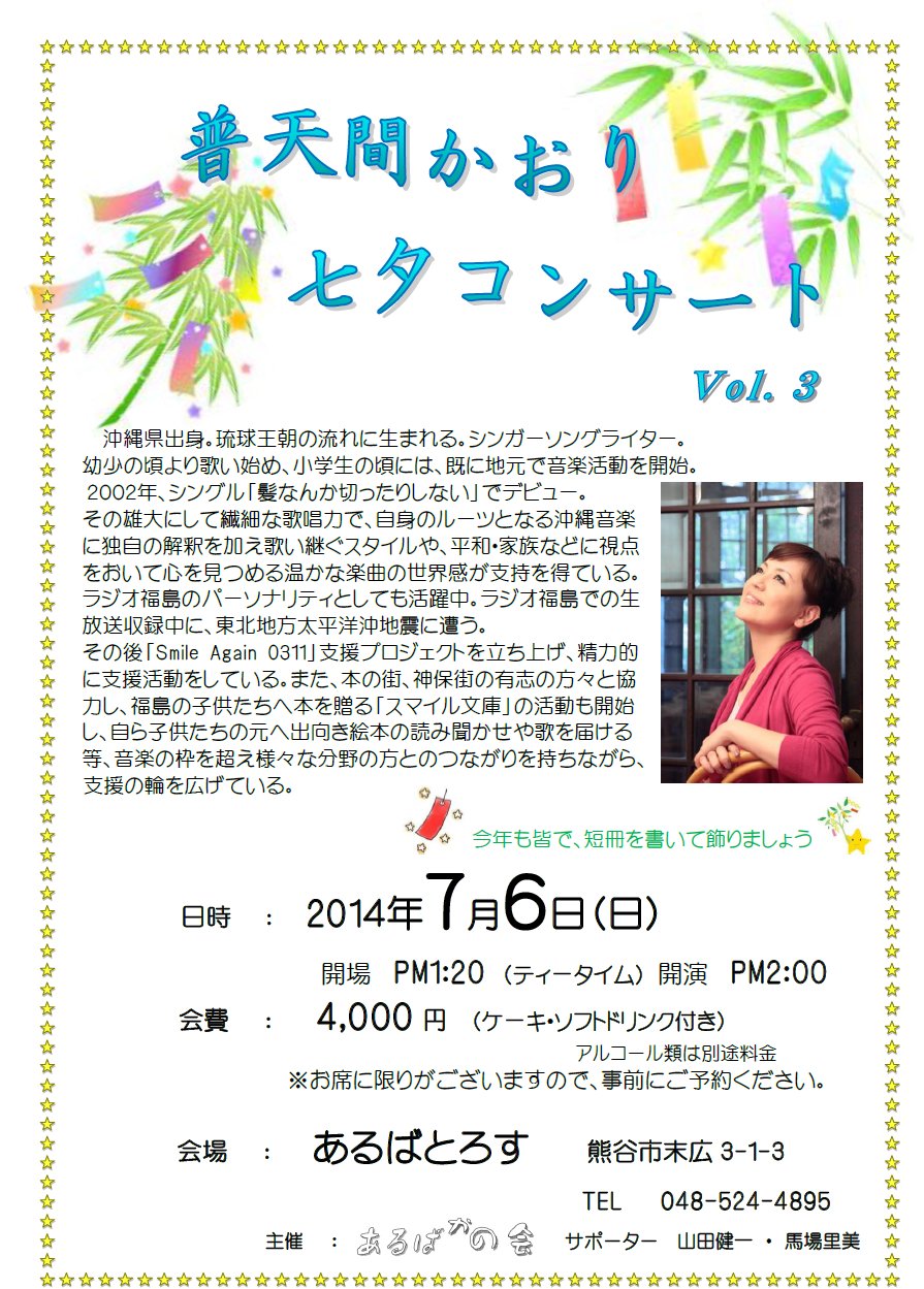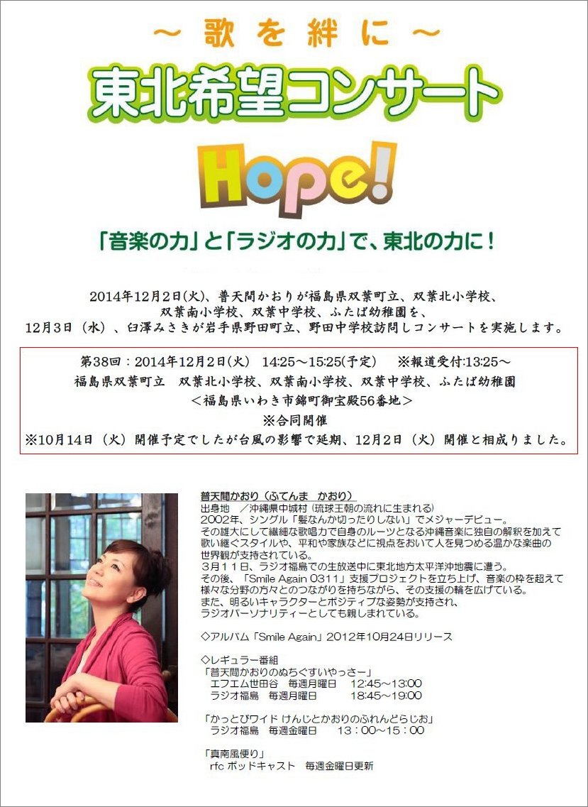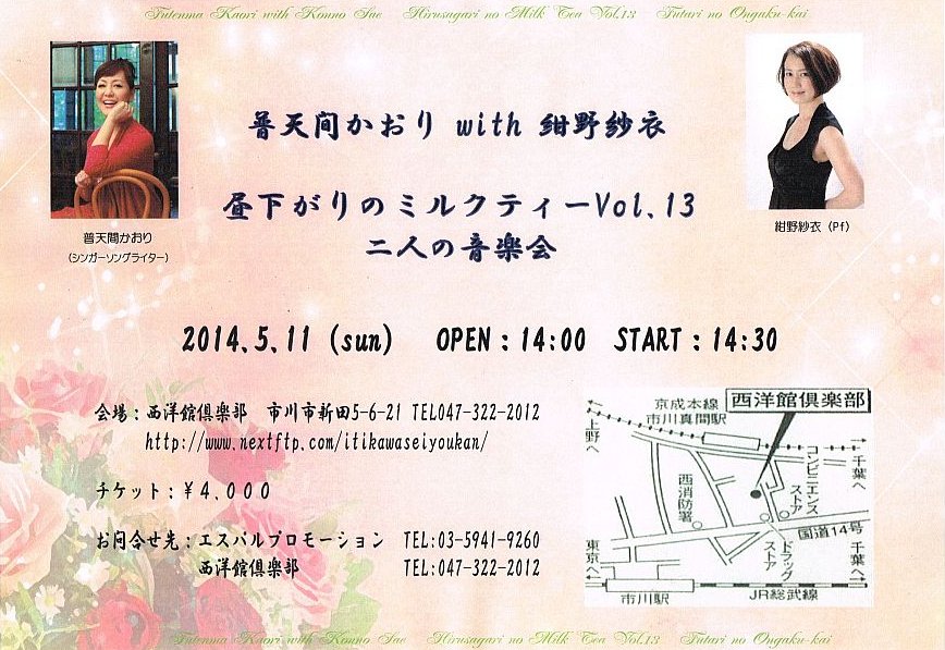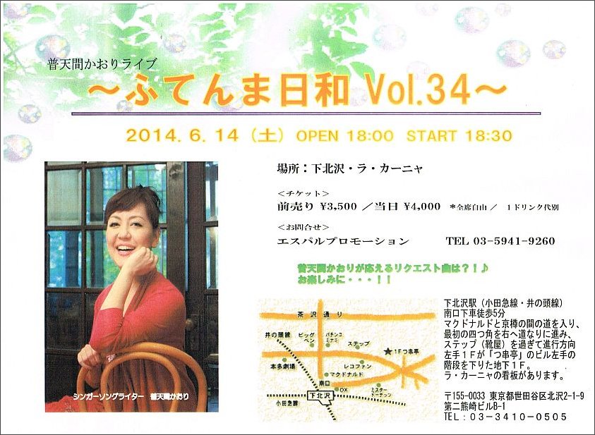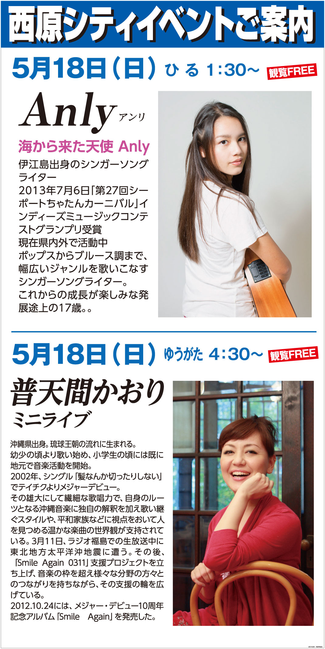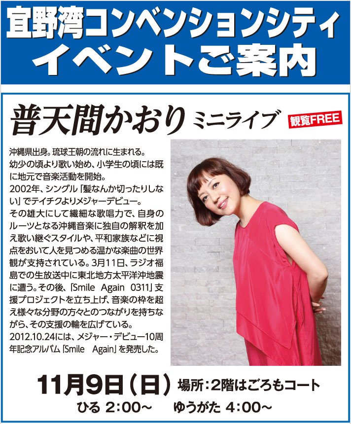 普天間かおりミニコンサートは22日(土)18:00〜(予定)