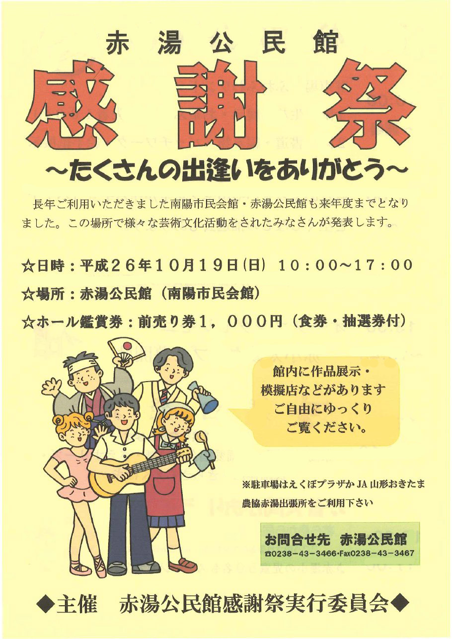10月19日(日) 赤湯公民館 感謝祭 〜たくさんの出逢いをありがとう〜 |