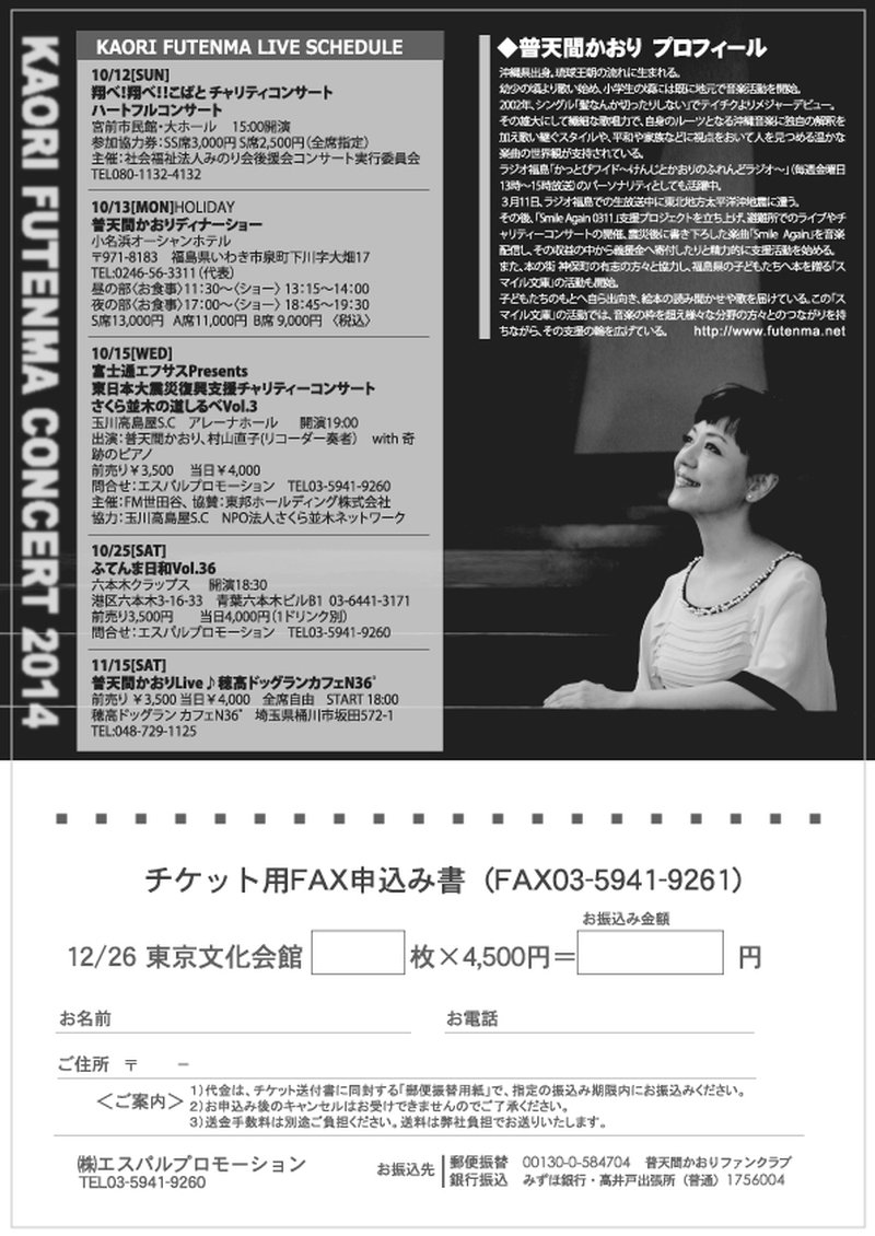 12月26日(金) 普天間かおり アルバムリリース記念コンサート 〜東京〜 |
