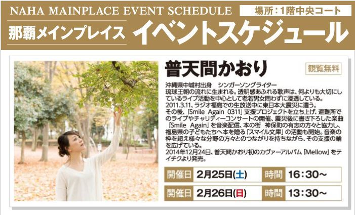 ※普天間かおりライブは、12:45〜と15:25〜の2回