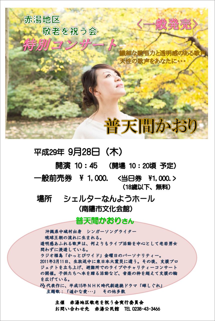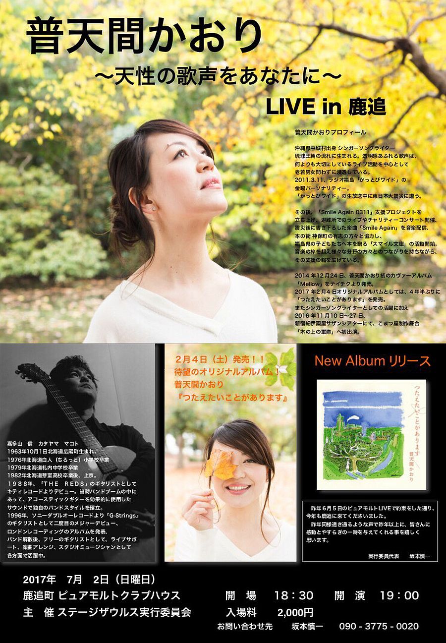 2月4日(土) 普天間かおりコンサート2017 〜つたえたいことがあります〜 |