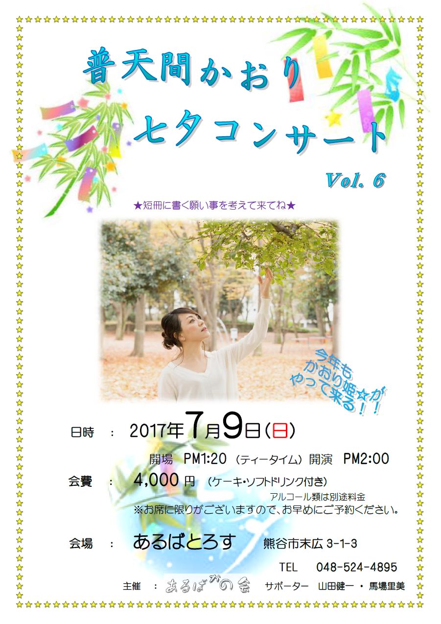 1月7日(土) 普天間かおりライブ 新春第一弾 決定!! |