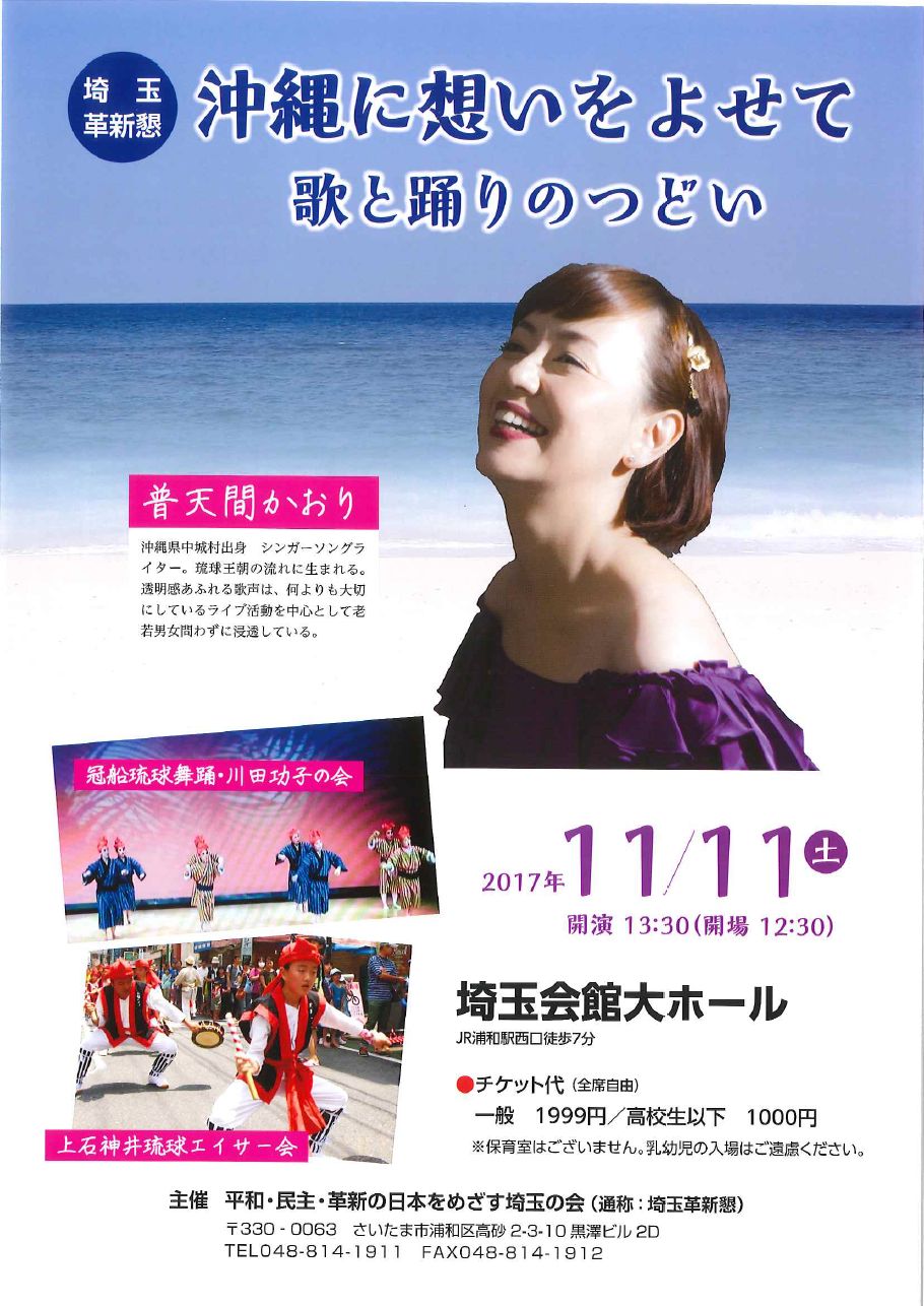 11月11日(土) 埼玉革新懇「沖縄に思いをよせて〜歌と踊りの集い〜」 |