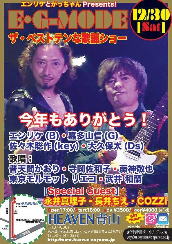12月30日(土) エンリケさん&がっちゃん Presents!(普天間かおり出演します) |