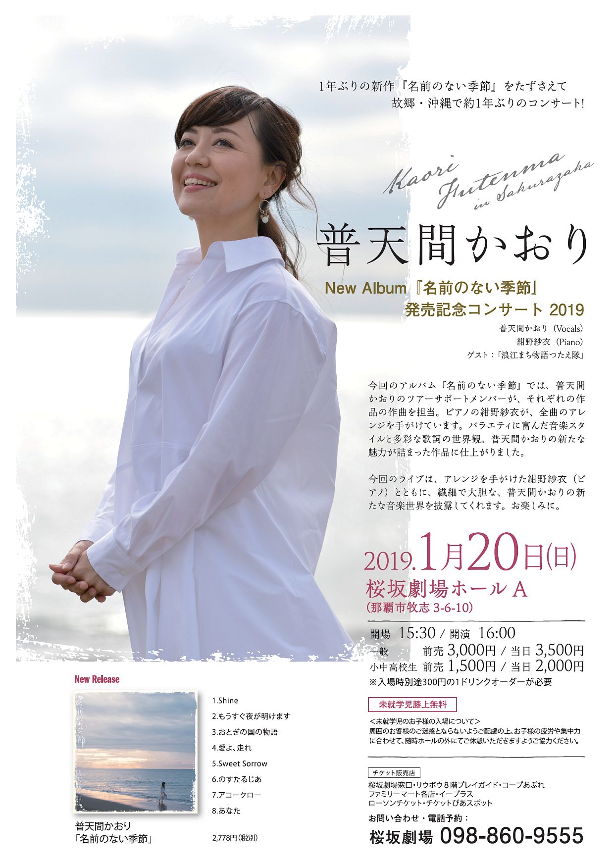| 1月20日(日) 普天間かおりコンサート2019 NewAlbum発売記念コンサート |