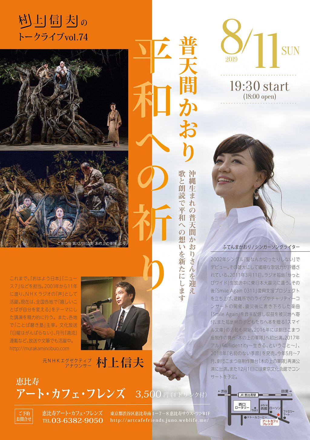 終演19:00普天間かおりを囲んでの夕食会は19:30スタートです。